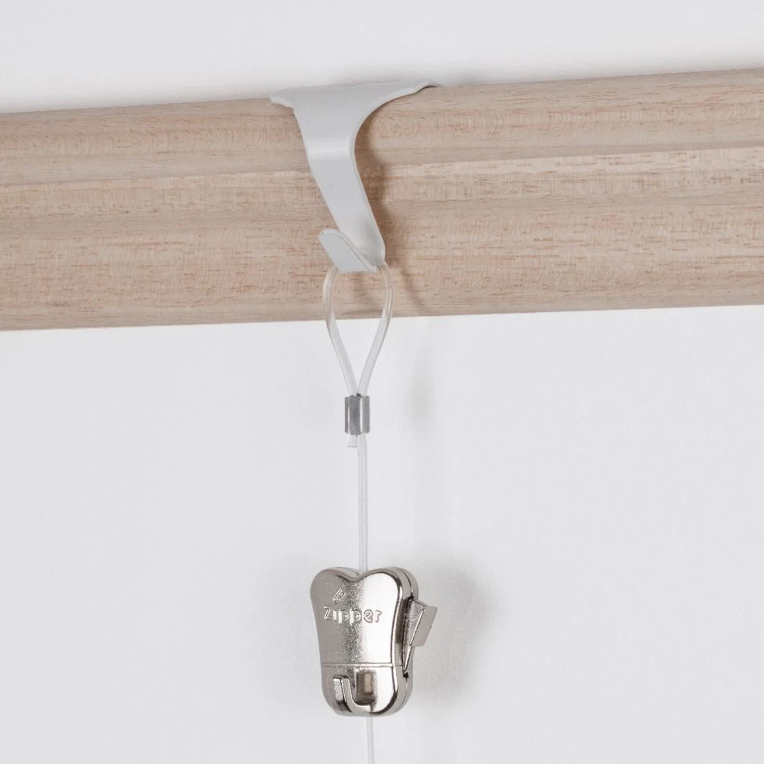 - Picture rail kit: Indestructible molding hook + transparent perlon cord + adjustable zipper hook