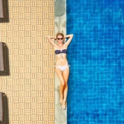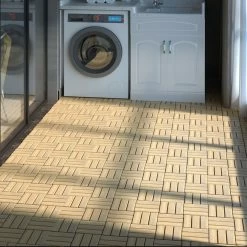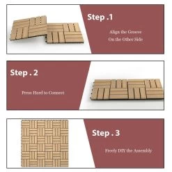 This pack of 10 wood floor tiles is perfect to redecorate your garden, terrace or balcony! These 10 pcs decking tiles are made of solid acacia wood, which is weather-resistant and highly durable. The PVC plastic base of tiles allows for plenty of drainage to avoid ponding. Thanks to its easy-to-assemble plug-in connection, the tiles can interlock easily and tightly to form the stable walking surface, not easy to slippery. Elegant and natural wood floor tiles features exquisite wood texture, aiming to build a relaxing area for enjoying the serenity and finding peace of mind.
