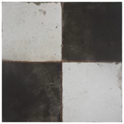 Amplify your decor with the old-world European radiance of the Merola Tile Kings Damero 17-5/8 in. x 17-5/8 in. ceramic floor and wall tile. Designed by interior architect and furniture designer Francisco Segarra, this encaustic-inspired tile is a true reflection of industrial design. The union of simple design and natural beauty are offset by the hand-painted look, a fascinating mix of a grid pattern and soft edges, all in black and white. Producing an antique look for indoor commercial and residential areas, the low-sheen glaze features imitations of the scuffs and spots that are the marks of well-loved, worn, century-old tile. These convincing marks give the tile an aged appearance and rustic charm. There are five different variations of this tile randomly scattered throughout each case. The scored grout lines can be grouted with the color of your choice, or left un-grouted for a rugged finish.