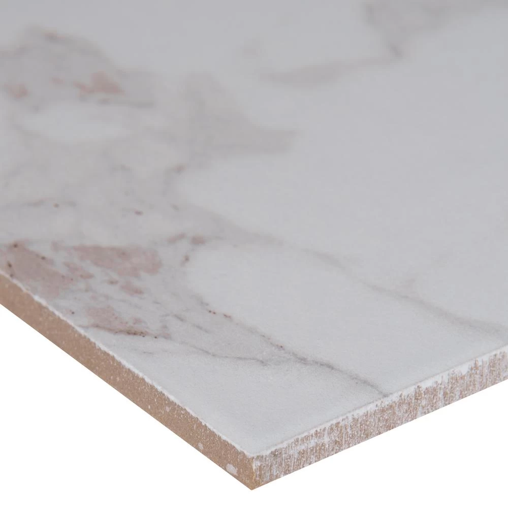 Incorporate a touch of style into your space with the MSI Carrara Polished Porcelain Floor and Wall Tile. A perfect complement to any contemporary aesthetic, this elegant, white rectangular tile blends the look of natural stone with porcelain durability and a high-sheen polished surface to help brighten your decor. Suitable for medium-duty commercial or residential floors and walls with minimum maintenance, the tile incorporates a distinctive personal signature in a wide variety of designs. Use matching trim tile or a combination of field tile to achieve the design that best suits your space and preferences. This is a rectified tile, mechanically finished on all sides to achieve uniformity. Its precise sizing allows for a thinner grout joint, which results in a clean, professional install and reduces staining issues.
