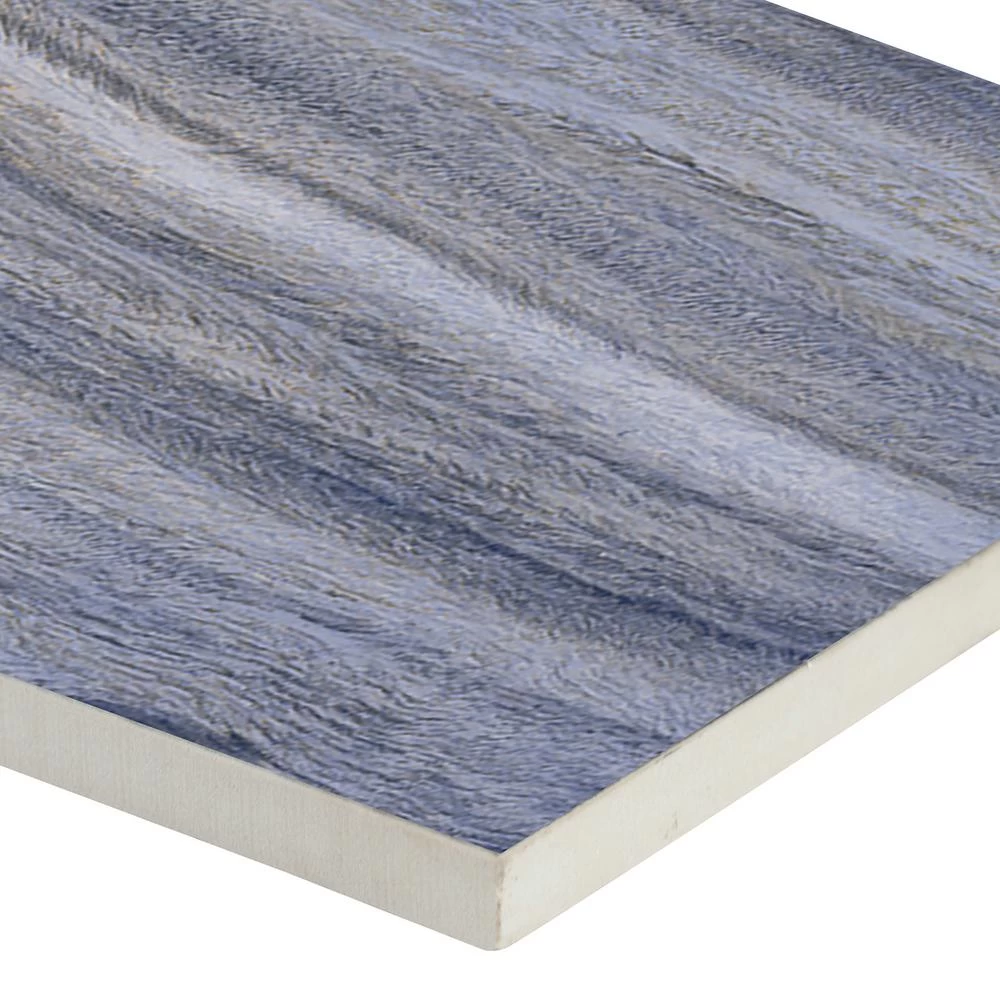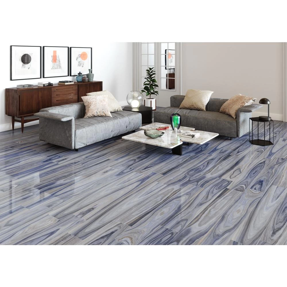 Add a splash of contemporary styling to your decor with this 8 in. x 48 in. porcelain floor and wall tile. This first-quality tile makes a statement on floors, walls and countertops. Designed with beautiful blues and steely grays, this tile features a distinguished polished finish that wows a residential or commercial space. Offering versatility, supreme style and strength, its wood-look plank elements a range of styles. This durable, stain-resistant tile is highly-resistant to abrasion and suits heavy-duty floor installations, such as entrances, commercial kitchens, corridors, terraces. The frost-proof impervious tile absorbs less than 0.5 percent of water, making it a perfect choice for indoor and some outdoor uses. Included per case are three-pieces. And unlike real wood, this tile is suitable for damp areas, including mud rooms and bathrooms, so you can achieve the look you desire without the worry. This rectified panel is mechanically finished on all sides to achieve uniformity. Its precise sizing allows for a thinner grout joint, which results in a clean, professional install and reduces staining issues.