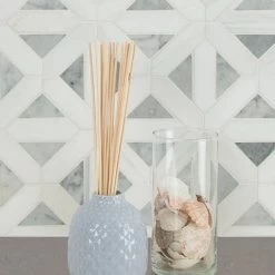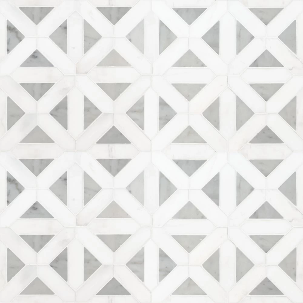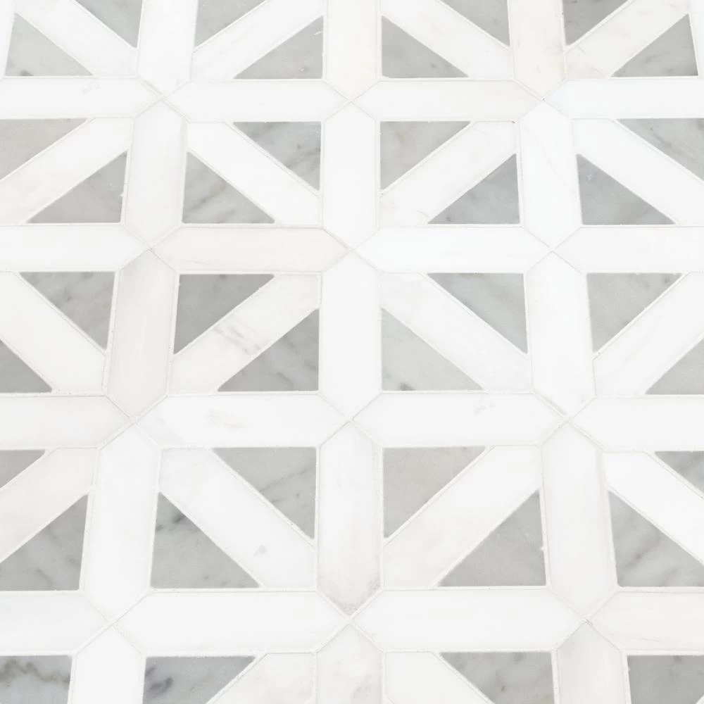 Accentuate your home with the elegance of this MSI Bianco Dolomite Geometrica Polished Patterned Mosaic Tile. Featuring Turkish marble stones with smooth grey veining, this tile adds visual interest to any interior space. It is the perfect choice for updating your kitchen backsplash, bath wall, countertop surface or feature wall. Durable and with mesh backing for easy installation, this 12 in. x 12 in. tile is designed for both residential and commercial use. Note: Inspect all tiles before installation. Natural stone products inherently lack uniformity and are subject to variation in color, shade, finish etc. It is recommended to blend tiles from different boxes when installing. Natural stones may be characterized by dry seams and pits that are often filled. The filling can work its way out and it may be necessary to refill these voids as part of a normal maintenance procedure. All natural stone products should be sealed with a penetrating sealer.