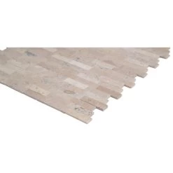 Achieve a designer look at a fraction of the cost with the MSI Roman Beige Splitface STIK Wall Tiles. These tiles are self-adhesive backsplash tiles and feature warm honey, beige and cream tones that swirl together in harmony. These natural travertine tiles with a peel and stick backing are a breeze to install; no grout or thinset is required. A DIY dream come true, they’re perfect for refreshing kitchen backsplashes, creating bedroom accents walls and even updating bookshelf insets quickly, affordably and easily. With its heavy-duty adhesive, STIK Wall-Tile stands the test of time even in the busiest homes and light commercial environments. It is recommended to blend tiles from different boxes as natural stone products can lack uniformity and are subject to variation in color, shade, finish, etc. Please inspect all tiles before installation; they may be characterized by dry seams and pits that are often filled. The filling can work its way out and it may be necessary to refill these voids as part of a normal maintenance procedure. All natural stone products should be sealed with a penetrating sealer.