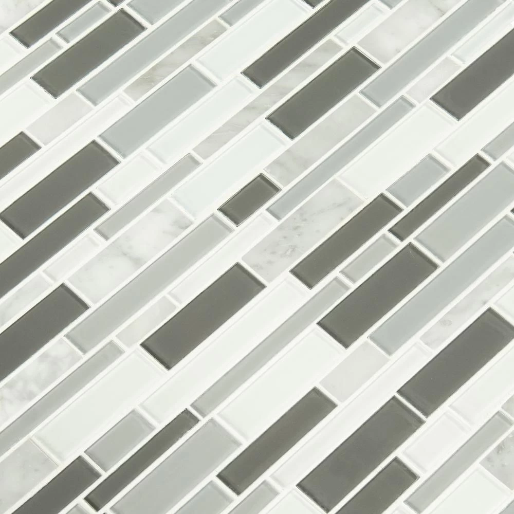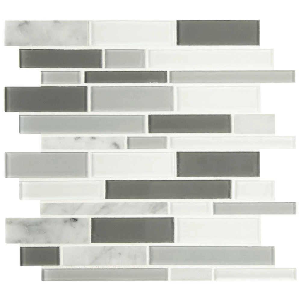 - Grade 1, glass/stone blend mosaic tile for wall and countertop use