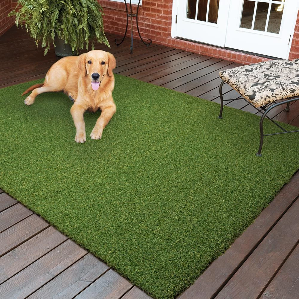 Pet 3.75 ft. x 9 ft. Artificial Grass is the landscape solution pet owners have been searching for. This durable synthetic turf eliminates the possibility of patchy brown grass due to pet use and remains green and healthy looking month after month. With this product, your dog or cat will no longer be able to dig up or ruin your pristine lawn. Relax knowing that your lawn will look fresh and inviting every day with minimal effort and maintenance. Pet Turf can also be used for landscapes, children’s playgrounds and commercial areas.